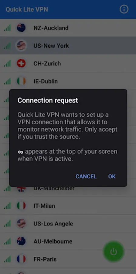 Quick Lite VPN is a free and unlimited VPN proxy, offering you a fast , Quick VPN, connection and stable VPN servers. You can access your favorites sites, improve your gaming experience and stay anonymous online. Download Quick Lite VPN now to enjoy fast, private and safe internet.