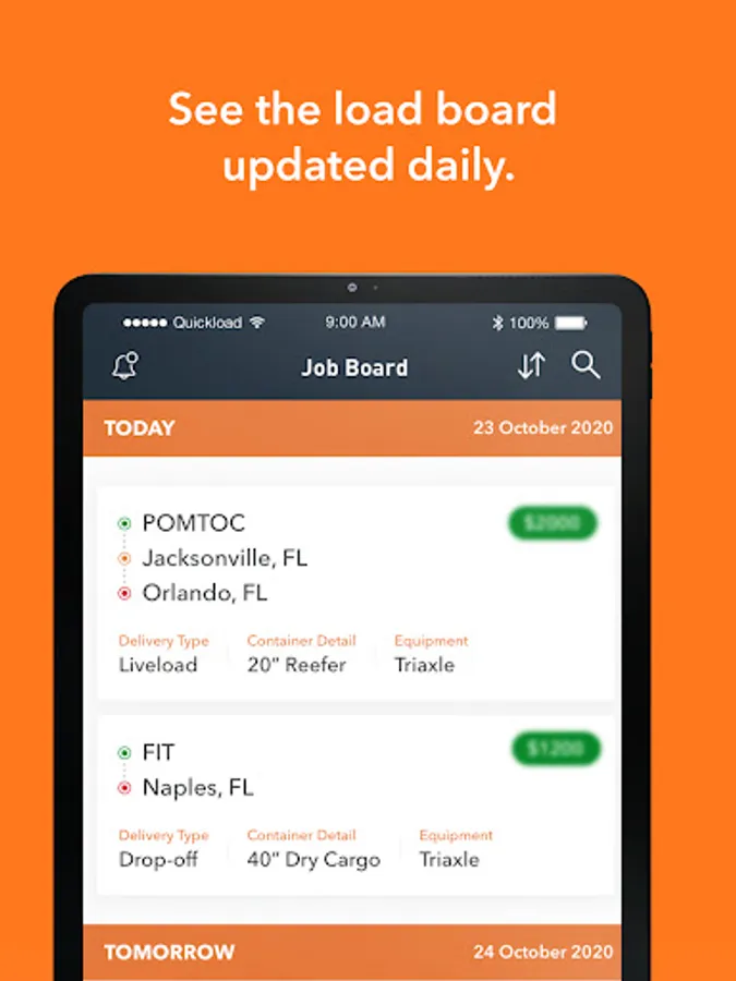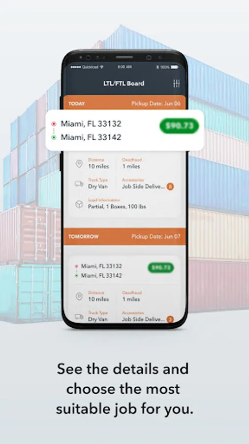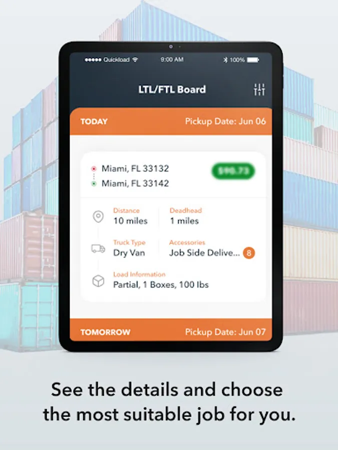 Accept and manage your LTL, FTL and Container loads, plan your trip, and get paid within 5 business days after the job is completed.