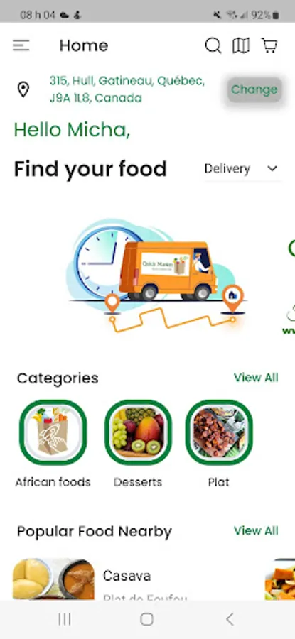 Quick Market |1-hour maximum | 1st ethnic food delivery service: it is the delivery of ethnic groceries and food at home. An on-demand B/B & B/C delivery service, which customers can access through their mobile devices or computers. We create an online presence for grocery stores and restaurants, then connect them with customers. We offer a "very fast" home delivery service, guaranteeing a maximum of 1 hour for order processing and delivery. Our team of couriers in the Ottawa-Gatineau region is composed of 15+ people available at all times with their vehicles to serve our valued customers. Quick Market is not only a delivery service but also a space for the promotion of ethnic cultures.