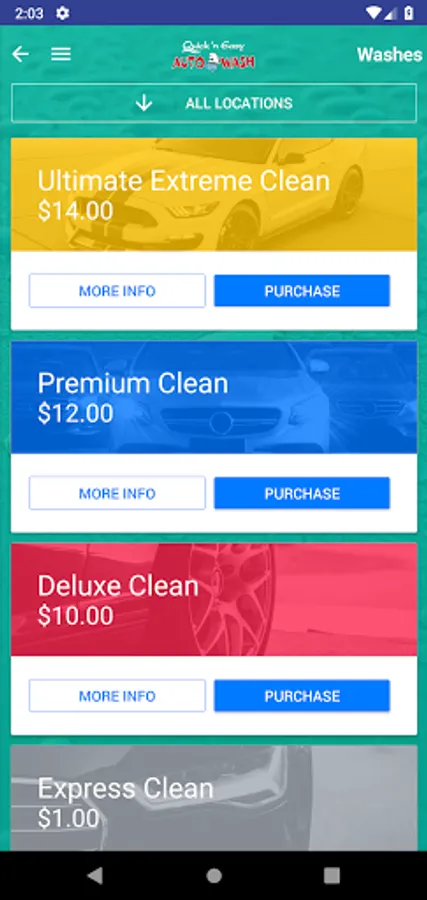 • Purchase car washes directly through the app