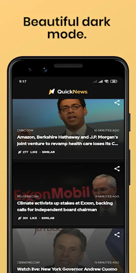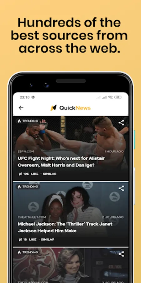 QuickNews provides you with high-quality real news articles from across the Internet, in real time.