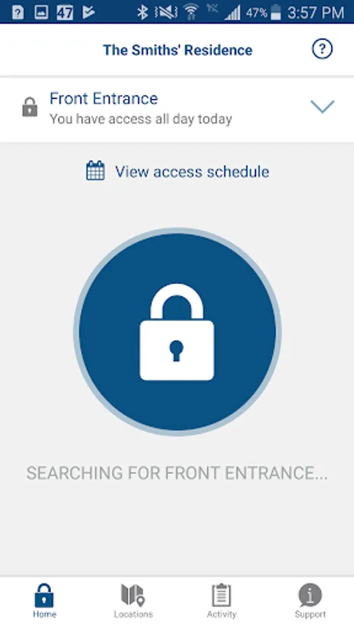 QuickBlue Visitor Management System is an app that uses your smartphone to lock and unlock doors via access control. This is being managed over BLE communication. A user is assigned "locks", also known as a door, and they have the option to select any of those locks and unlock them via the QuickBlue app.