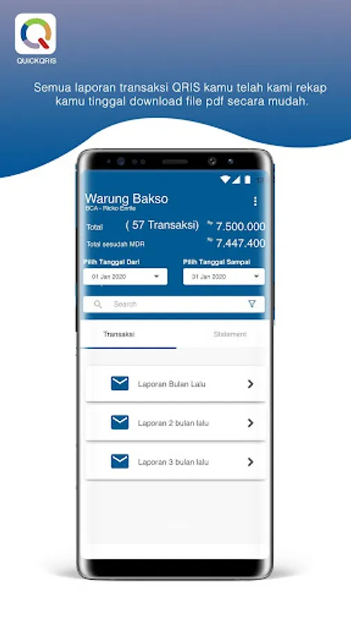 QUICKQRIS will record all your QRIS transactions and can be downloaded as a pdf.