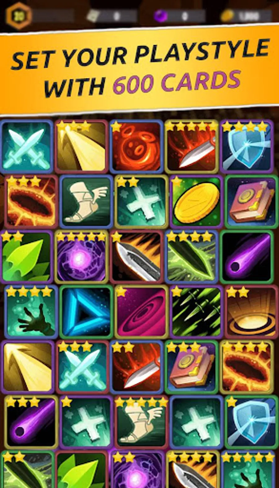 Discover among 600 cards and choose bests to boost your knight!