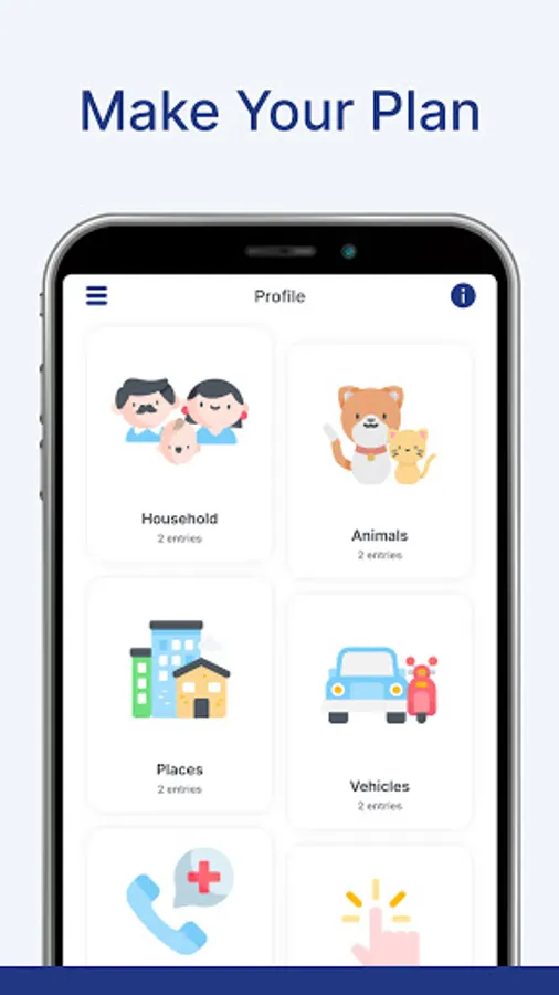 Once Your Plan is generated, it is stored on your smartphone and can easily be shared with family members and friends. Your Plan comprises: