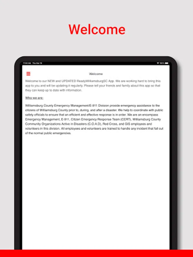 Be prepared for disaster. The ReadyWilliamsburg South Carolina app is an all-hazards overview of disaster information to help you prepare, plan and respond to disaster in your area.