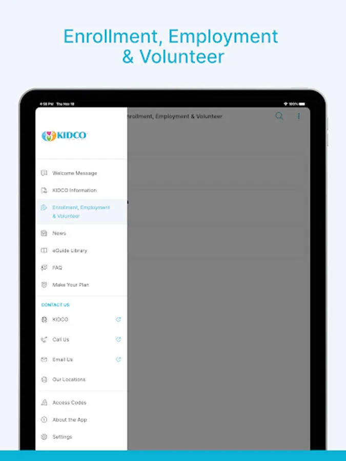 The KIDCO mobile app is an extension of KIDCO, delivering early child care information, education services and learning resources to help at-risk families and children. Users can access news articles and helpful digital guides at any time; learn about enrollment; browse FAQs, find contact information; create emergency family plans and much more.