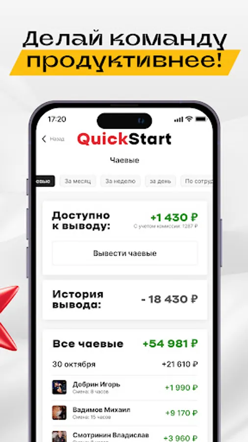5. Monitor the work of your employees: control of shift attendance, order processing analytics, a convenient tip system and much more