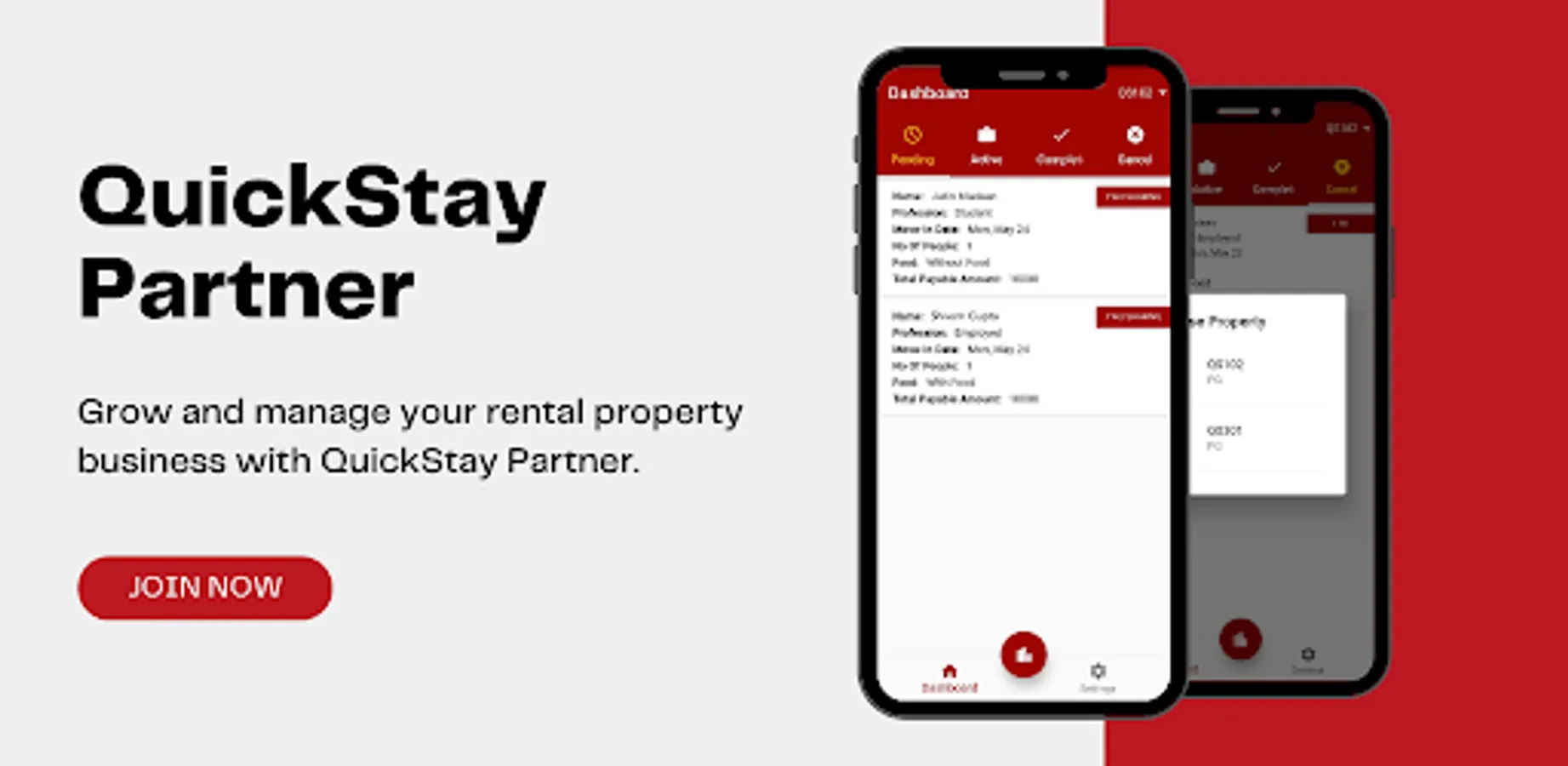 QuickStay Partner app is developed by QuickStay for the owners of any rental property including PG, Flat, Independent Room, Co-Living space, and Hostel.