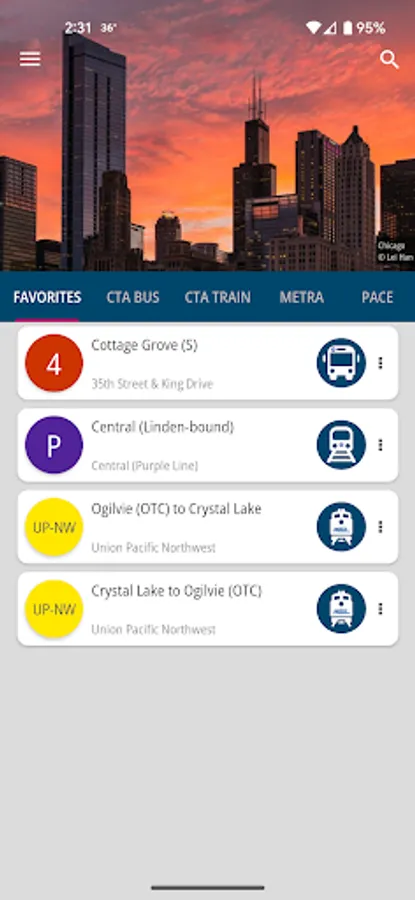 - Full integration with CTA Bus Tracker, CTA Train Tracker, Metra, Pace Bus Tracker and Divvy systems all in one app! Data is always dynamic and updated from CTA, Metra and Pace to ensure accurate routes and schedules every time you use it.