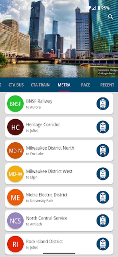 - Supports all Metra lines: BNSF, UP-W, MD-W, MD-N, NCS, UP-N, UP-NW, HC, RI, SWS and ME