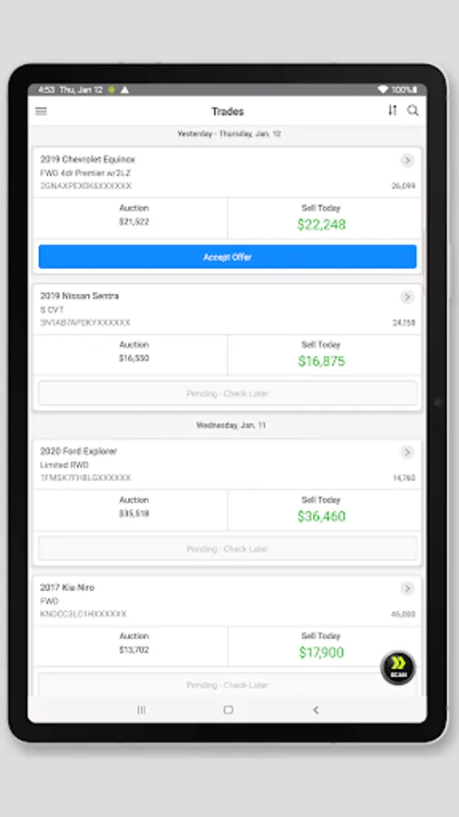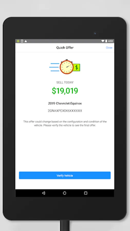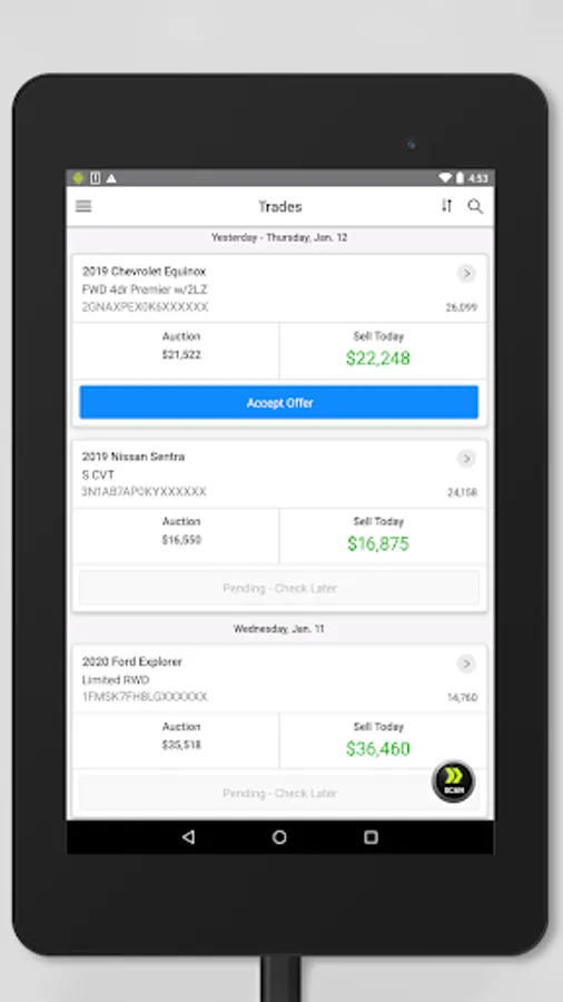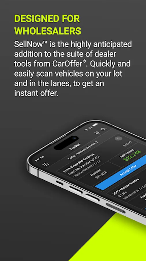 Get offers on CarOffer faster than ever before with the new SellNow app! Simply scan (or enter) a VIN and verify the location, mileage, color, and trim to get a "Quick Offer." SellNow enables CarOffer users to get preliminary offers without having to go through the normal verification steps. If you like the offer, simply answer the verification questions afterward to receive your final price.