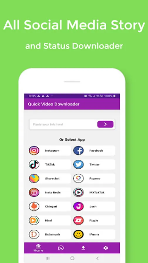 All in One Downloader App for Whatsapp, Instagram, Twitter, ShareChat, TikTok, Chingari, Likee app lets you download photo images, GIF, Video also it allows you to share right from the app to your friend's circle.