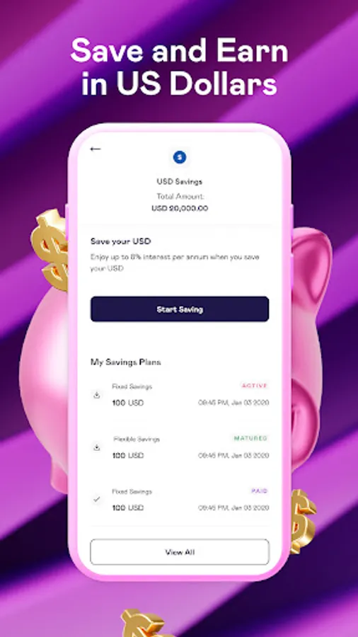 Get up to 10% interest paid daily when you save in US Dollars (USD) on Quidax. You can save in USD with local currencies like Naira or using crypto (Bitcoin, Ethereum and other cryptos).