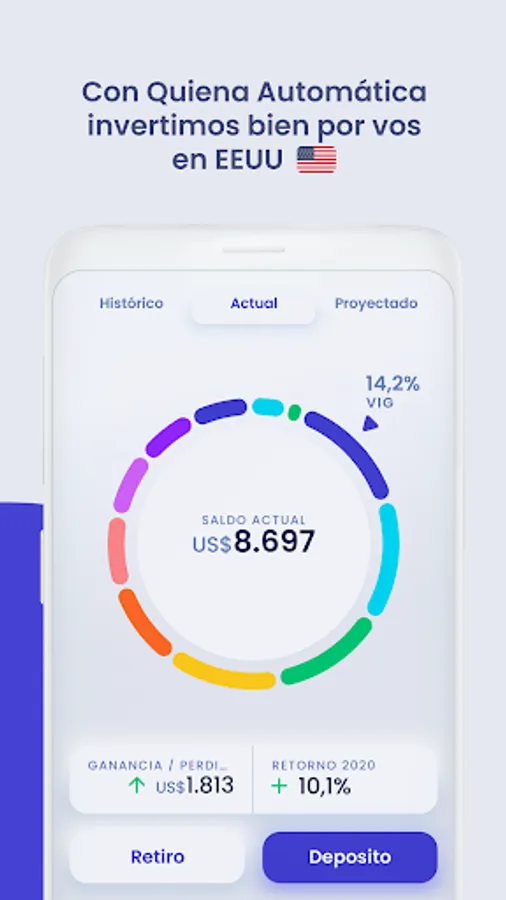 We offer you the best combination of local and international investments, in pesos and in dollars. We make it easy for you: with our technology and specialized advisers we manage your investments so you don't have to worry about anything. You can come and go whenever you want, without restrictions.