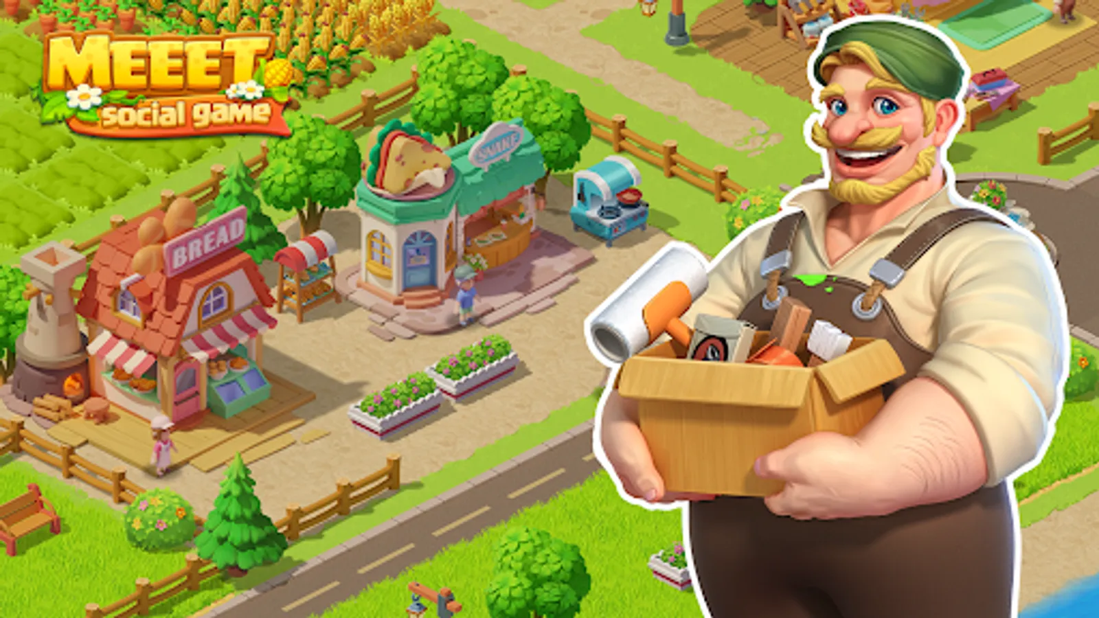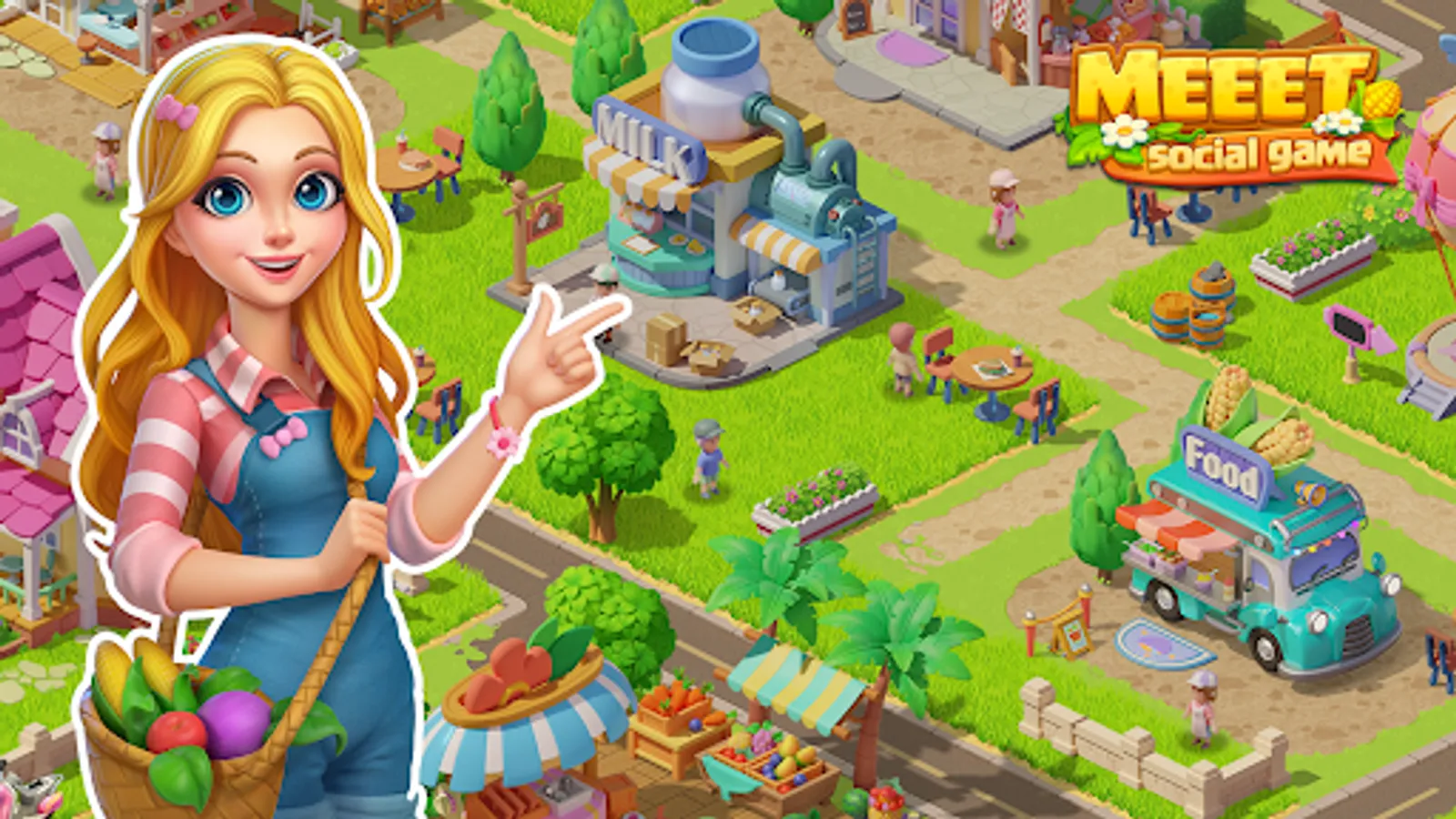 MEEET a social simulation game. MEEET has an abundant game system, including planting, construction, task, barn, etc. Players grow a variety of crops on the land, harvest crops, and use them to process them into delicious food.