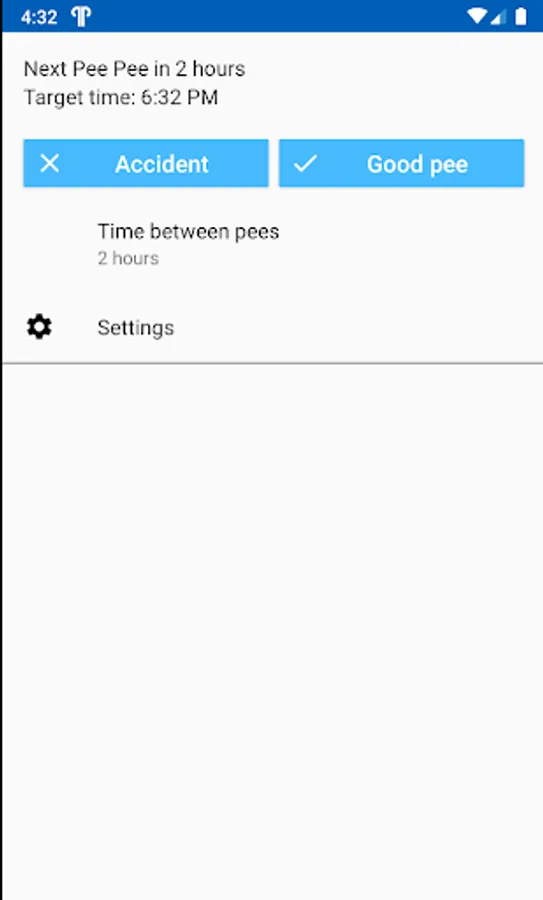 A smart timer for potty training pets. Automatically adjusts the next pee timer based on previous performance. E.g. Good pee within target time, add 2 minutes to next timer.