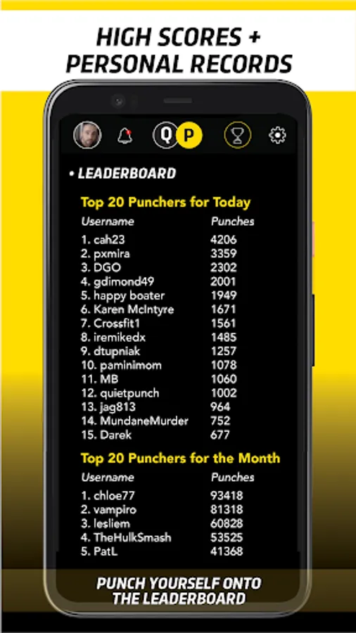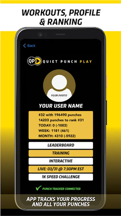 Quiet Punch Play tracks your punches and achievements and allows you to compare yourself and compete with other users.