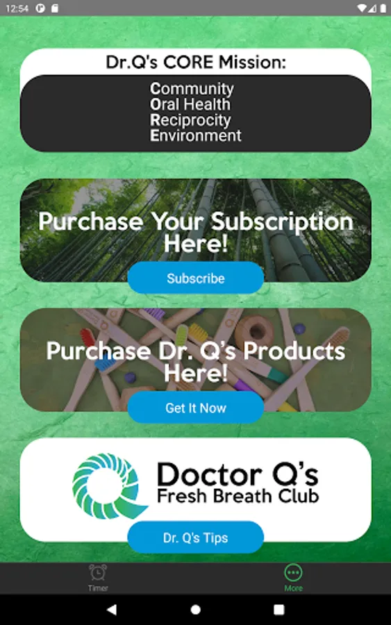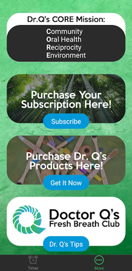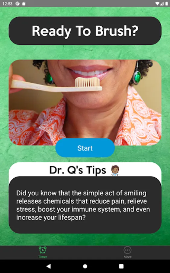 QBrush helps you brush properly with its Toothbrush Timer and while educating you with valuable Dental Hygiene Tips from Dr. Q himself!