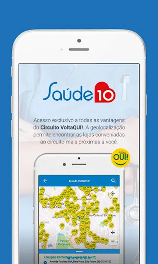 The Health Card 10 offers cashback - real money back! The more you use, the higher the value of your cashback. When making purchases with your Health Card 10 in conveniadas stores the circuit VoltaQUI! cashback is calculated and accumulated in this design. The geolocalizador in our application indicates the establishments near you that are part of our circuit.