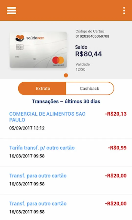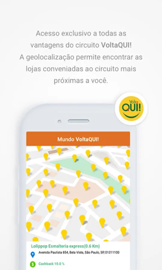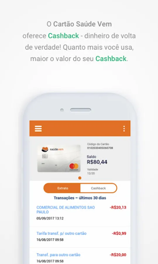 The Health Come Card offers cashback - real money back! The more you use, the greater the value of your cashback. When making purchases with your Health Card Comes in the stores agreed to the VoltaQUI Circuit! the cashback is calculated and accumulated on your card. The geolocator in our application indicates the establishments near you that are part of our circuit.