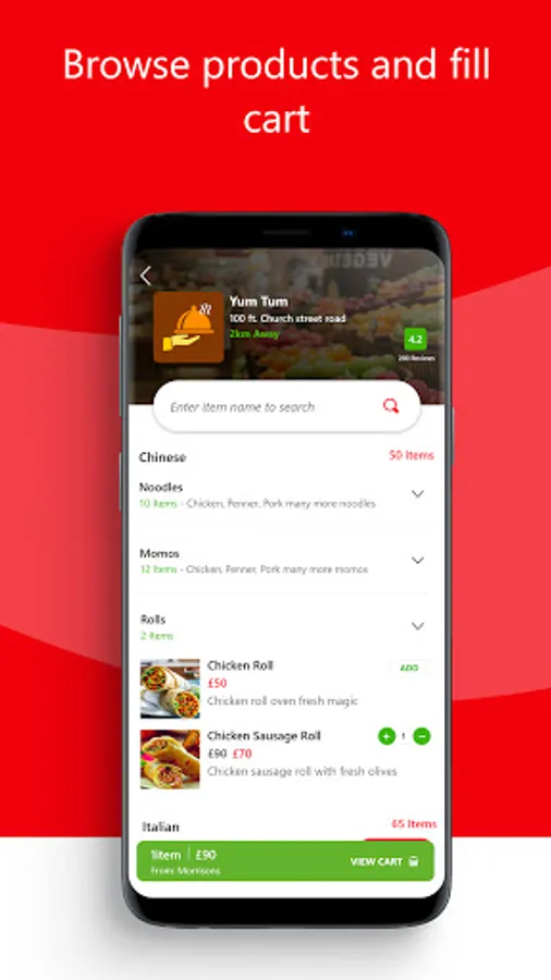 Browse products and fill cart: Customers can browse products by categories or stores. This means that customers can enjoy variety whilst vendors can maintain individuality and brand presence.