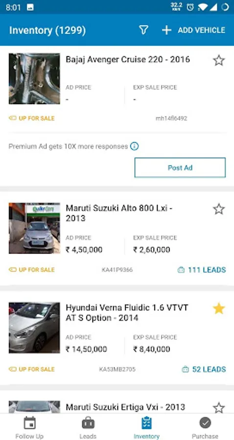 - View, create and manage all your inventory and view all leads interested against it