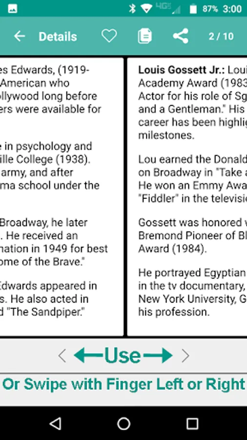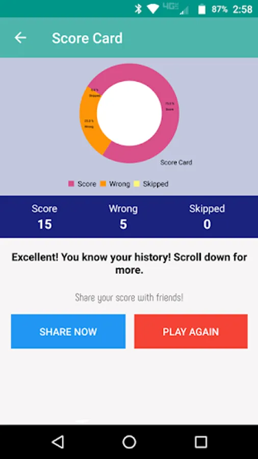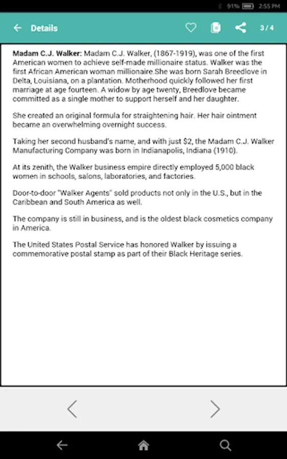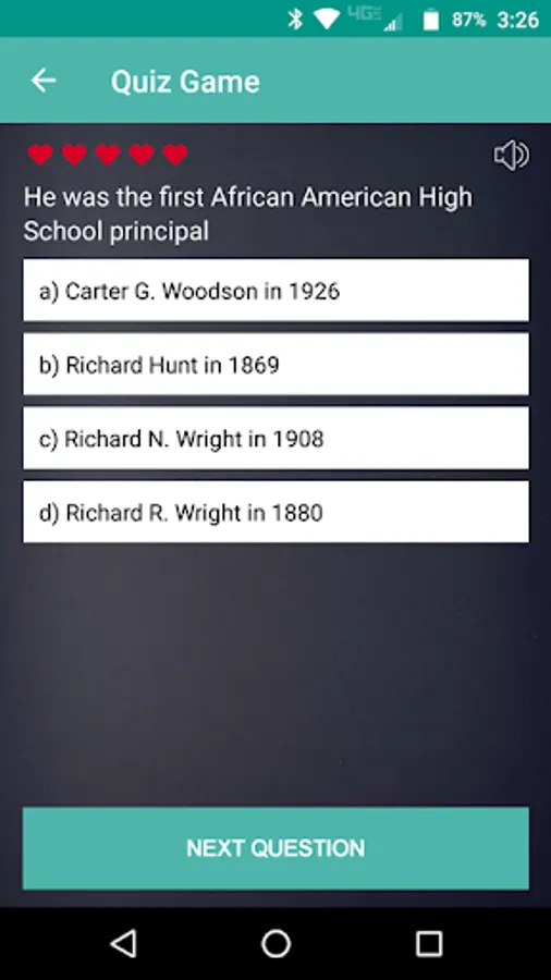 Black History Express also includes a completely new quiz game. 98% of the quiz game is based upon the information you’ll find in the 26 big chapters of the app. With hundreds of questions, you’ll reinforce your appetite to know a little bit more and to beat the quiz game. When your quiz game lives are gone, you’ll see a colorful pie chart Score Card with your right, wrong, and skipped questions with the complete list of questions you tackled. You can share your results with friends and family. The quiz game questions are all new and are not the same as those that make up our solo Black History Quiz apps for Android or IOS. Quiz game sound effects can be turned on or off.