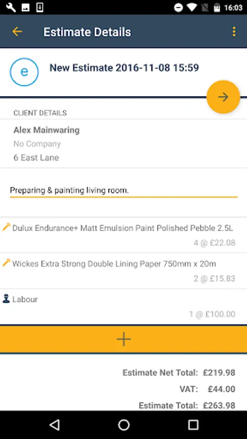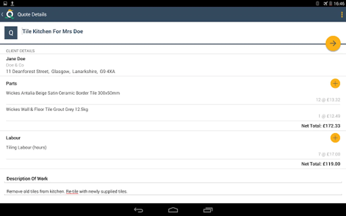 Quilder allows you to create Estimates, Quotes and Invoices whilst on the go, and send them to your customers direct from your mobile! You can also create one convenient shopping list of all parts required and send to suppliers for pricing.