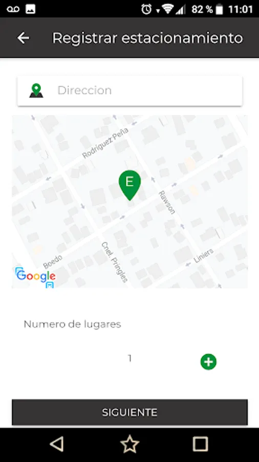 4. Second step, enter the parking address, accompanied by the location on the map.