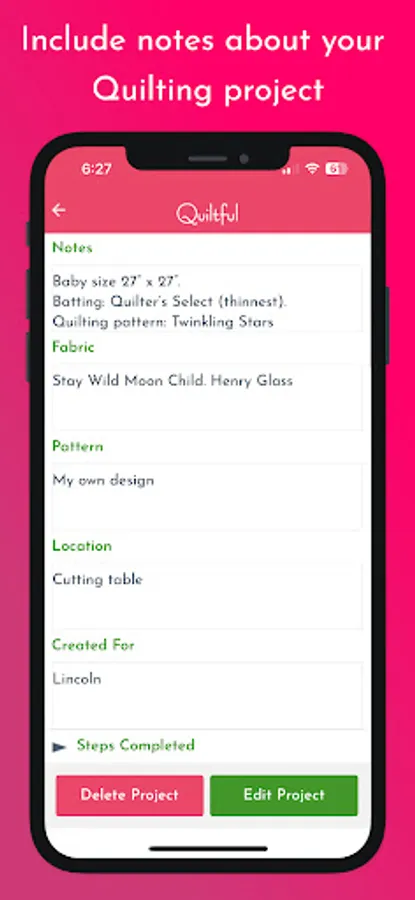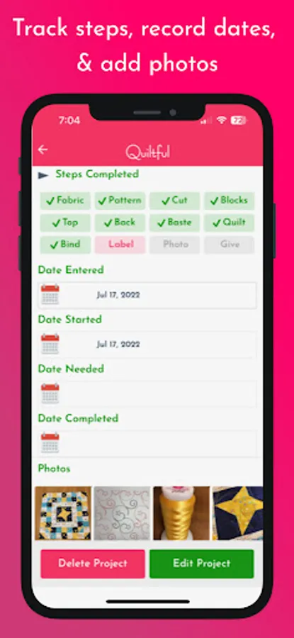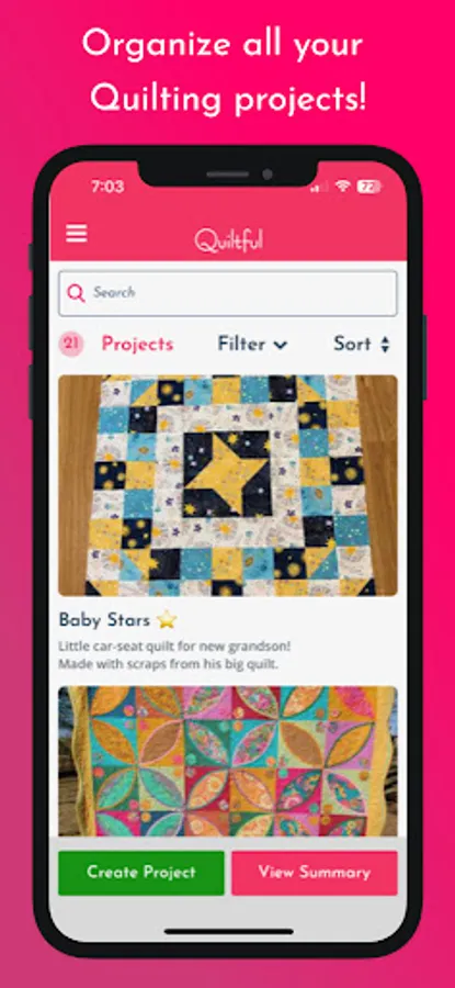 We hope you find the Quiltful app useful and that it helps you organize your projects. The goal is to