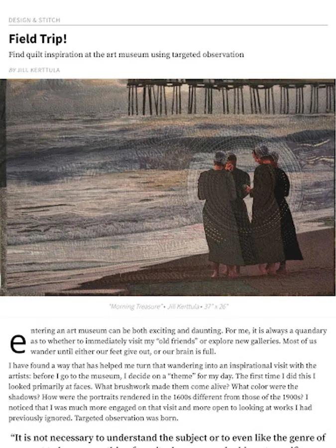 Quilting Arts magazine encourages quilters to create one-of-a-kind works of art! Covering all types of quilting, surface design, and embellishment techniques, the magazine is geared for the seasoned quilter as well as the beginner. Learn design tips and tricks from the world's most renowned and innovative teachers and quilters.