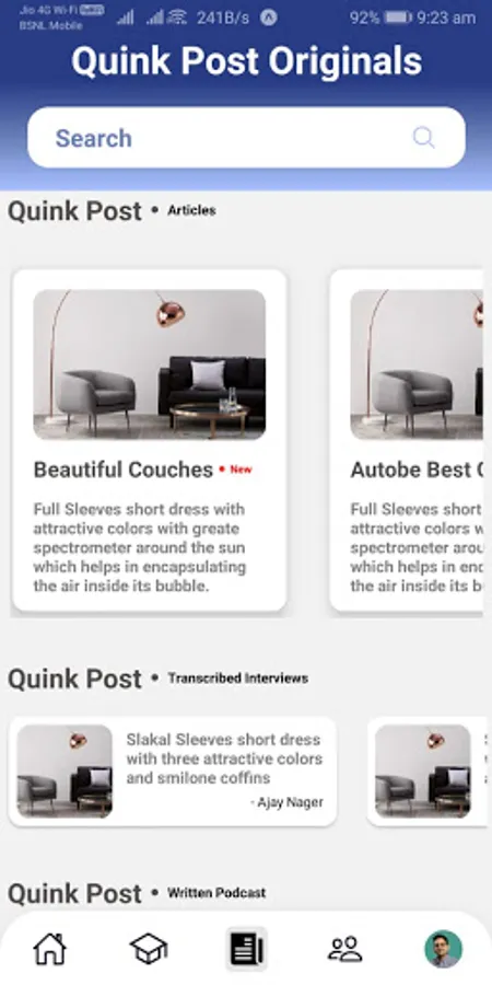 The users can access the ORIGINALS section where they can get transcribed interviews, articles, written podcasts, etc.