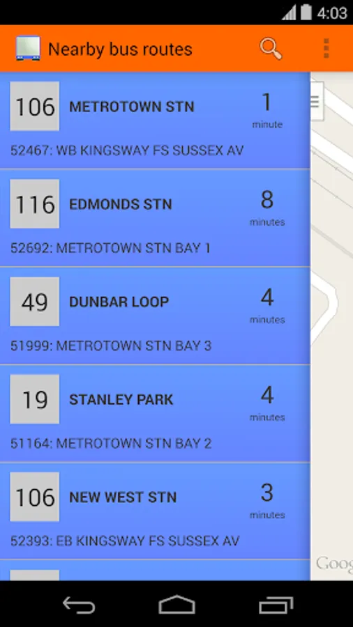 Quickly see which bus routes serve your nearby stops and when they'll get there. See the real-time location of buses around you and their expected arrival times. Search up stop times for any bus stop in Metro Vancouver. Add routes to your favourites or let the app sort through them for you.