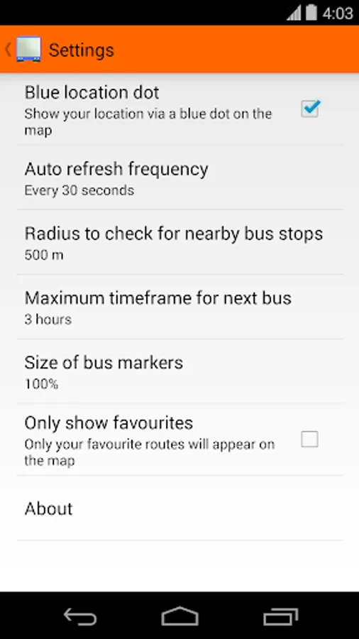 • Tap on a bus stop item to see the schedule for the next 10 buses serving that stop.