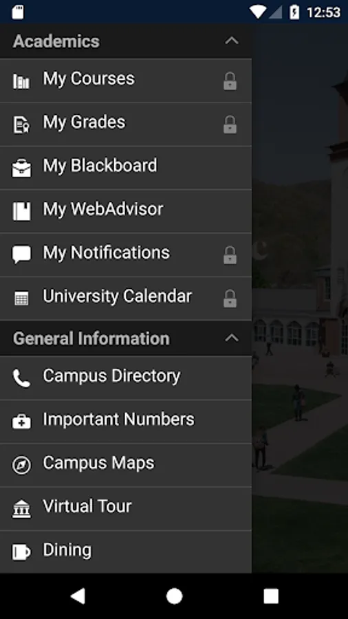 Directory – look up faculty, staff, and students with the ability to use the e-mail or phone capabilities within your device to correspond