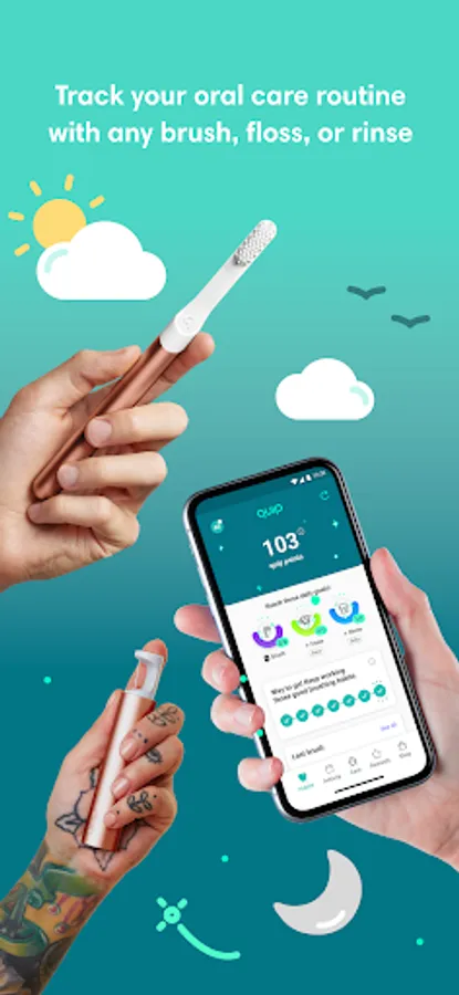 The quip app makes it easy to track and improve your oral care routine, get a virtual checkup, and earn rewards for good habits! Any toothbrush, floss, or mouthwash can be tracked, with extra points earned for using quip.