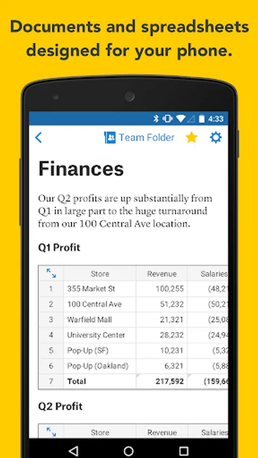 - Easily review changes, comments, annotations to your docs and spreadsheets from your phone or in the office