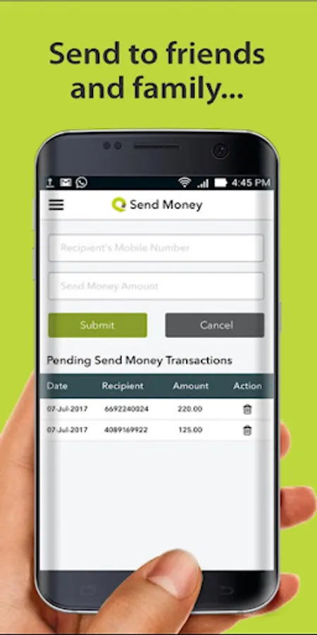 When you register at your bank for a Quisk account, you can use this app to complete quick and easy transactions through your mobile, all with the push of a button.