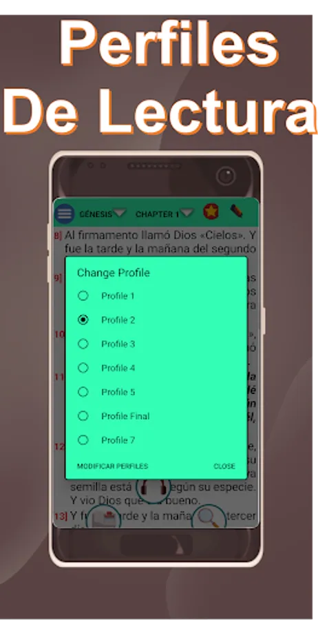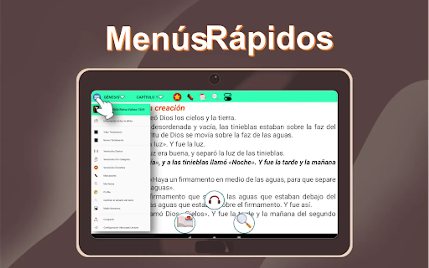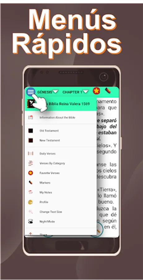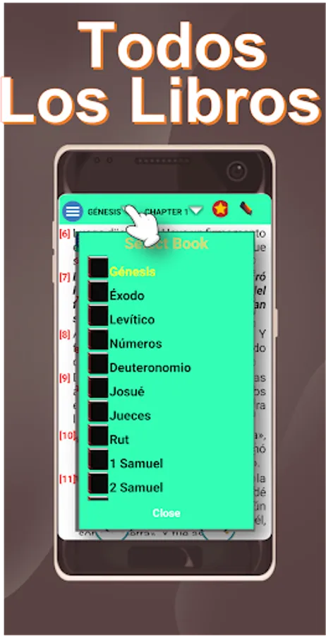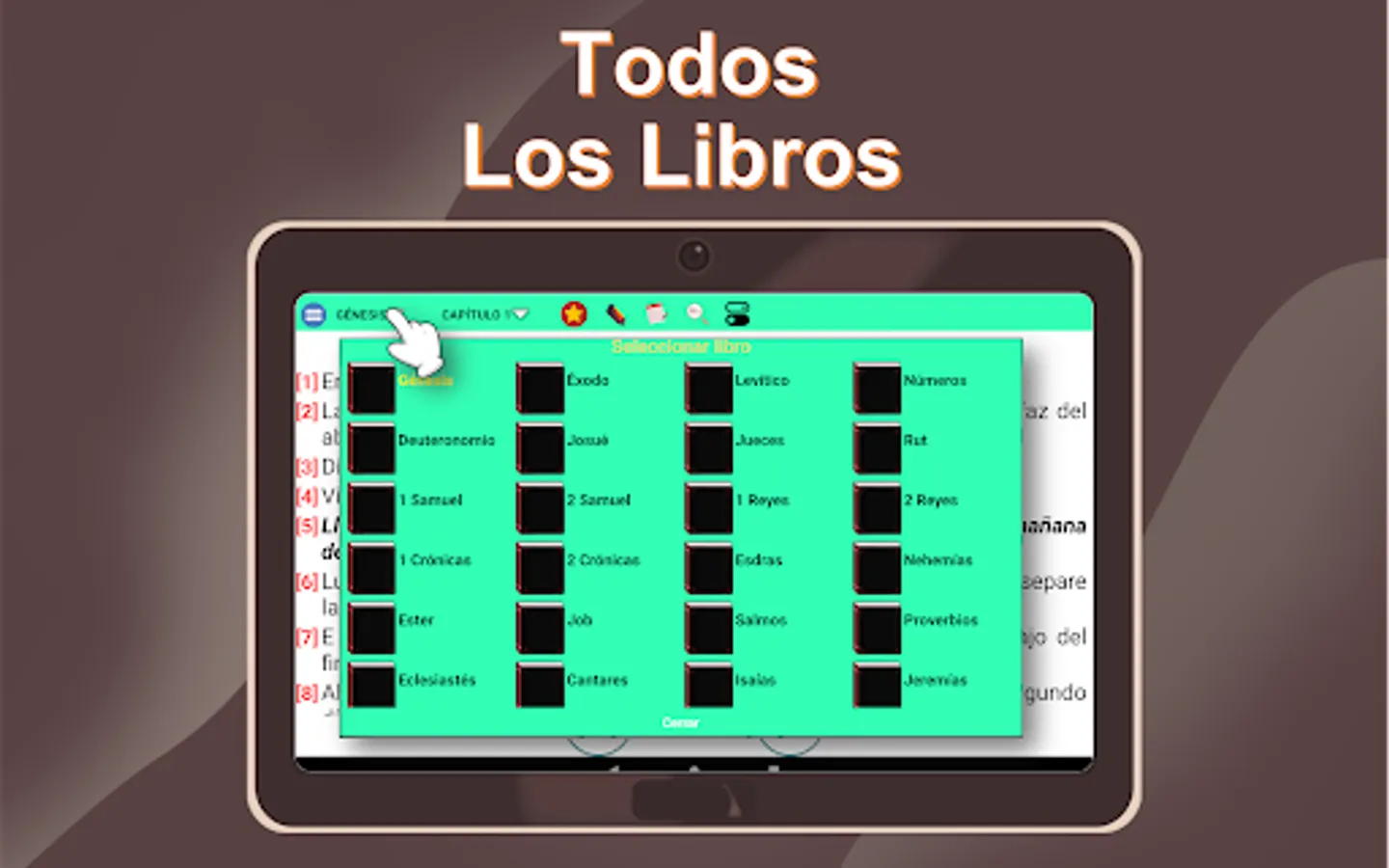 You can click on the screen and in the lower part the name of the book and the chapter will appear, when you press it the list of books will appear and in the other the chapters that the selected book has.