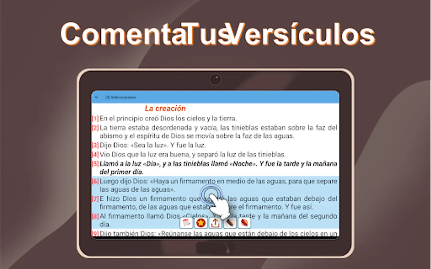 You can select one or several verses of a chapter and mark as a favorite, you can also share the verses with your friends on different social networks.