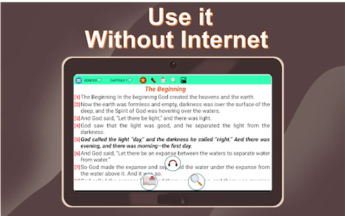 Access to the options menu quickly and sensibly. Option to change the text size. Change of reading background of the book. Access to favorite chapters and verses. Search for words in books, chapters and verses. Night mode to facilitate reading and decrease the light of the screen.