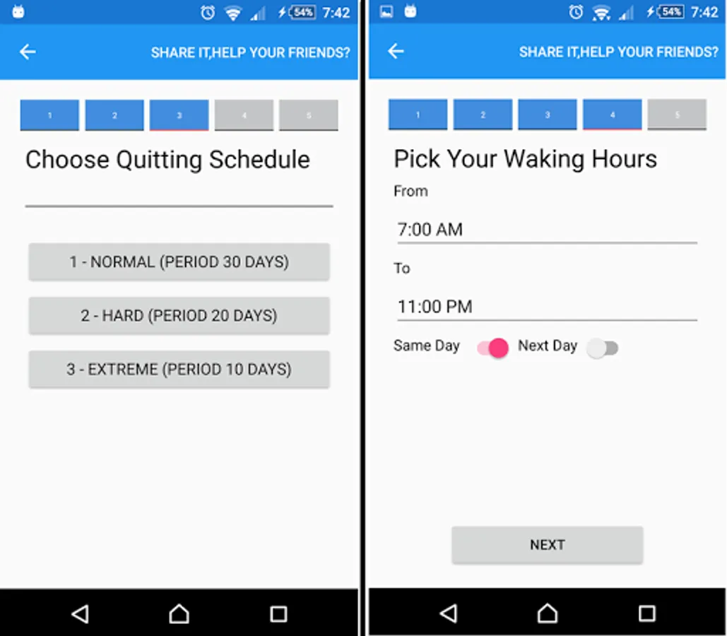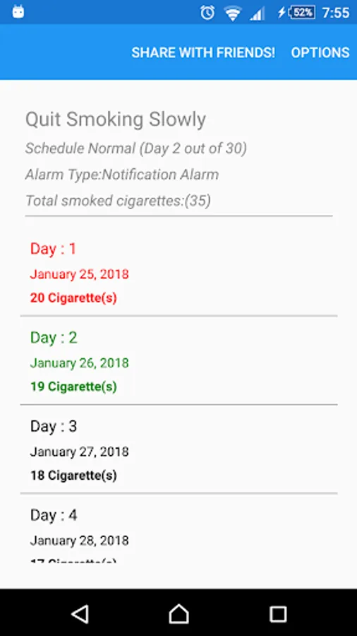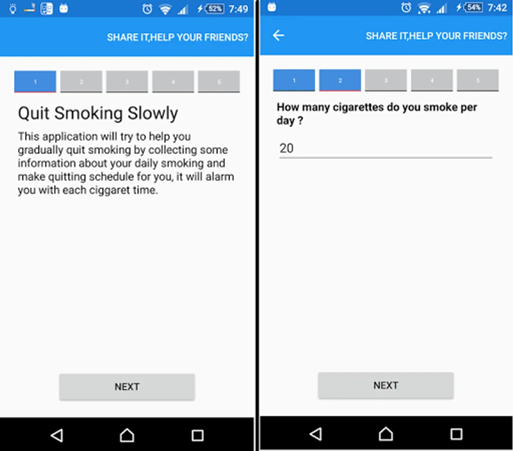 This application will try to help you gradually quit smoking by collecting some information about your daily smoking and make quitting schedule for you,