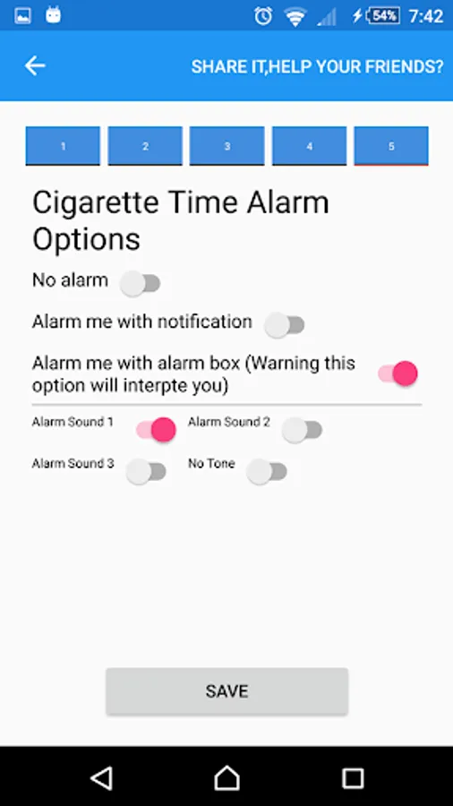 it will alarm you with each cigarette time and there are different types of alarms.