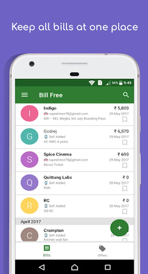 For bills of your online purchases, forward the bill available in the email to bills@billfree.in from your registered email address