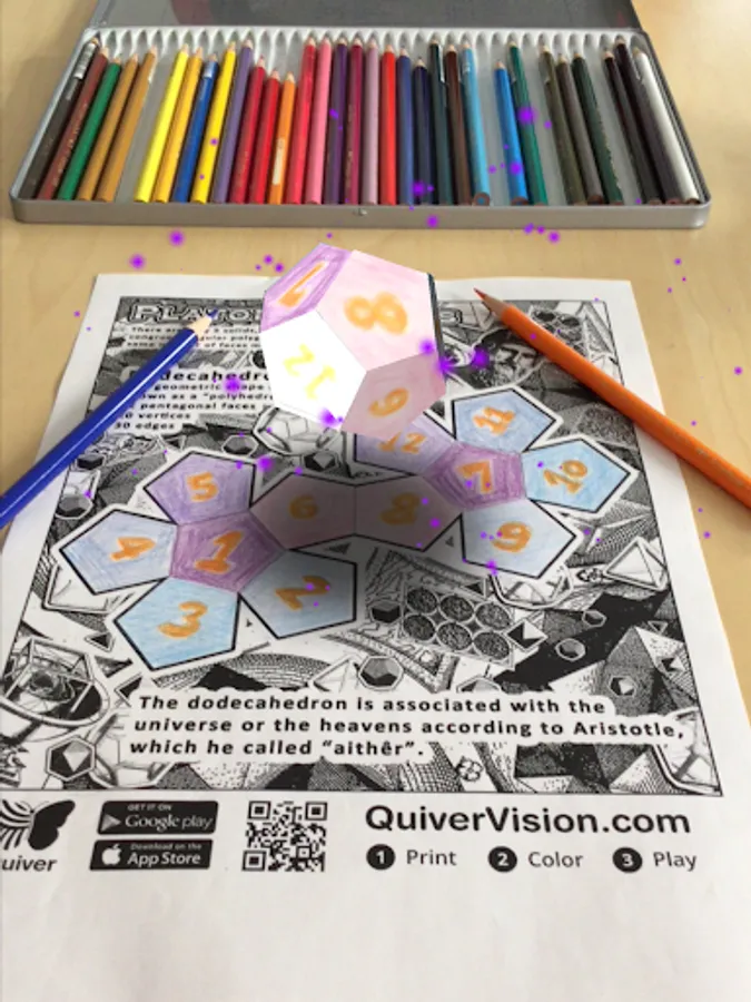 Coloring pages have never been so much fun! The Quiver Education App combines physical coloring from “back in the day” with state of the art augmented reality technology to bring students an extraordinarily magical and educational experience.