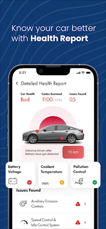 Scouto assesses your car's health, evaluates the battery level, engine health, and much more. Avoid any sudden breakdowns with instant vehicle health reports and emergency alerts.