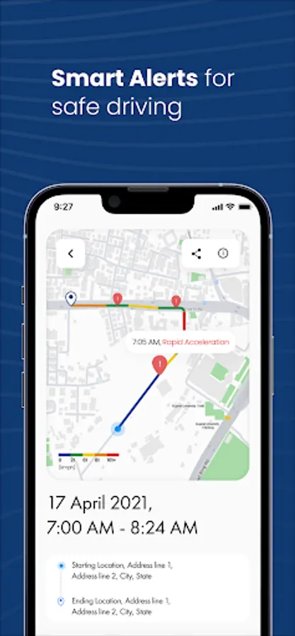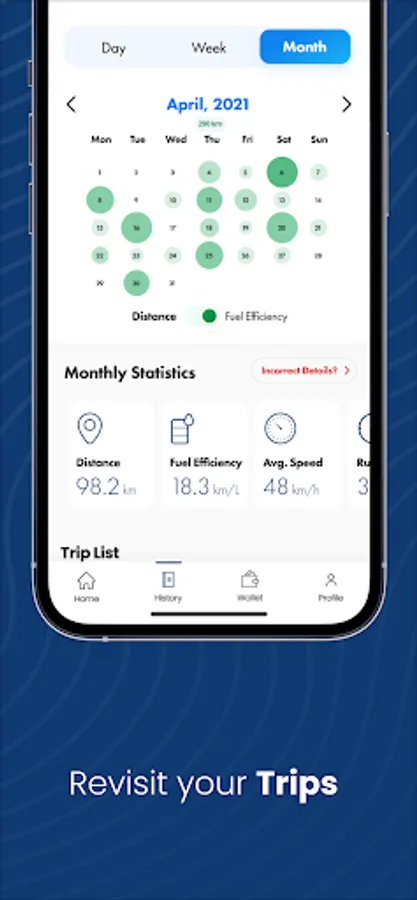 Analyze and monitor your trip history and compare statistics like fuel efficiency, average speed, and run-time on a daily/ weekly/ monthly basis as well as keep track of your trip expenses and alert notifications.