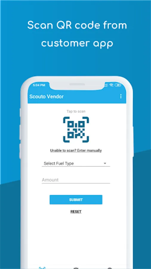 Scan customer QR codes while filling fuel.
