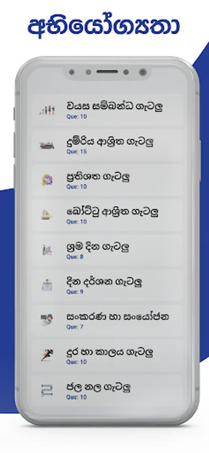 It contains more than 1000+ IQ & General knowledge quiz Sinhala in different levels and quizzes categories.